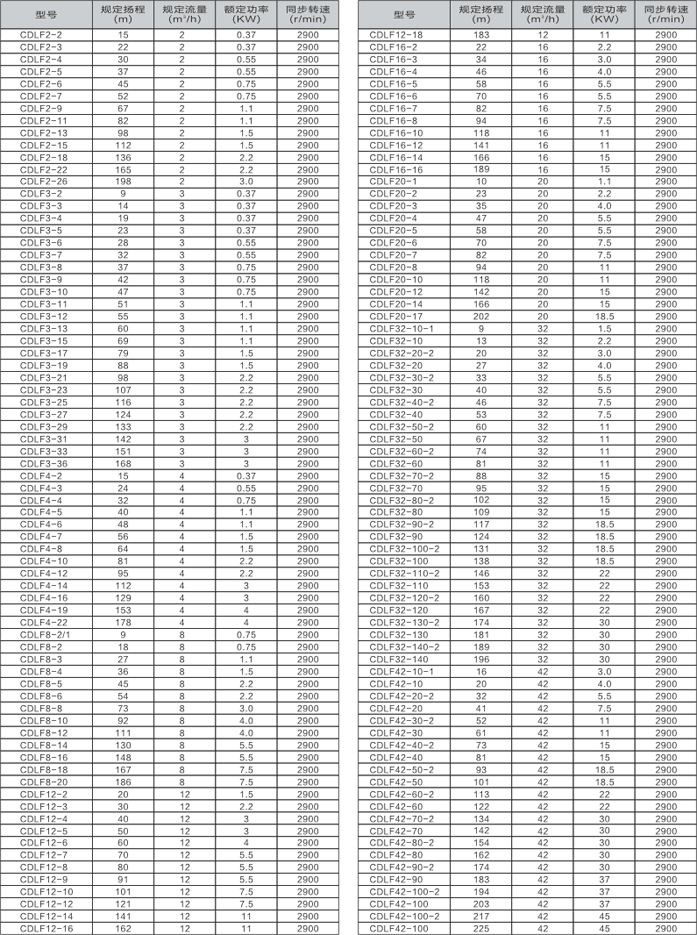- CDLF系列轻型不锈钢里式多级离心泵(以下简称泵)是吸取了国内外先进技术而设计制造的非自吸立式多级离心泵,采用标准立式电机和快装式机械密封,更换非常方便。泵的过流部分均采用不锈钢(304/316)材料制成,可适用于轻度腐蚀性介质。该产品可替代国外CR、CRN等同类产品。产品投放市场后,以其高效节能、质量可靠、使用范围广等特点,深受广大用户的喜爱。