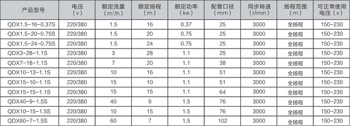 (5)全系列产品为全扬程设计,大流量,可低电压正常使用,特别适合广大农村井下抽水、农田灌溉、养殖业增氧给排水、园林浇喷及旅馆、食堂、高层建筑等场所供水之用。