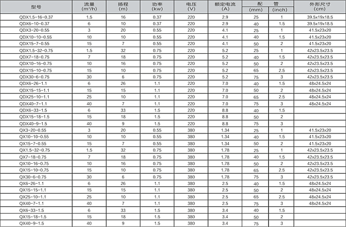 - QDX, QX series submersible pump protection device internal configuration, the upper part of pump and motor, single-phase or three-phase asynchronous motor, pump motor is located in the lower part of the centrifugal impeller, volute structure, moving between the pump and motor sealed with double mechanical seal. Each stationary port as static sealing material used at oil rubber "O" ring seal. This series pump due to small size, light weight, suitable for rural water pumping, irrigation, garden watering, family life, water can also be used to exclude industrial water, construction drainage and aquaculture industry and other occasions.
